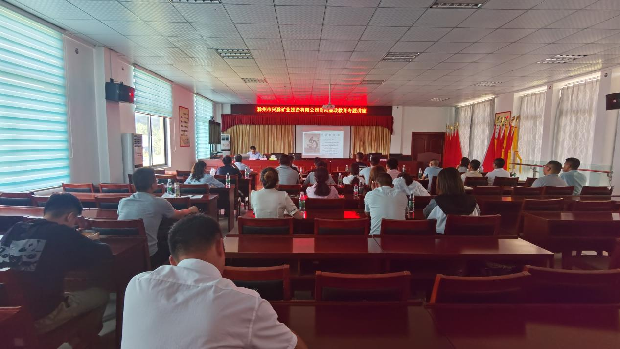 為進一步推深做實黨史學(xué)習(xí)教育,切實加強公司黨風(fēng)廉政建設(shè)和反腐敗工作,促進黨風(fēng)廉政教育在基層一線落地生根,7月23日,市礦投公司邀請市紀(jì)委監(jiān)委駐市財政局紀(jì)檢監(jiān)察組副組長張桂林赴興明礦業(yè)調(diào)研指導(dǎo)并作黨風(fēng)廉政教育專題講座。公司經(jīng)營層及相關(guān)工作人員約30余人聆聽了講座。